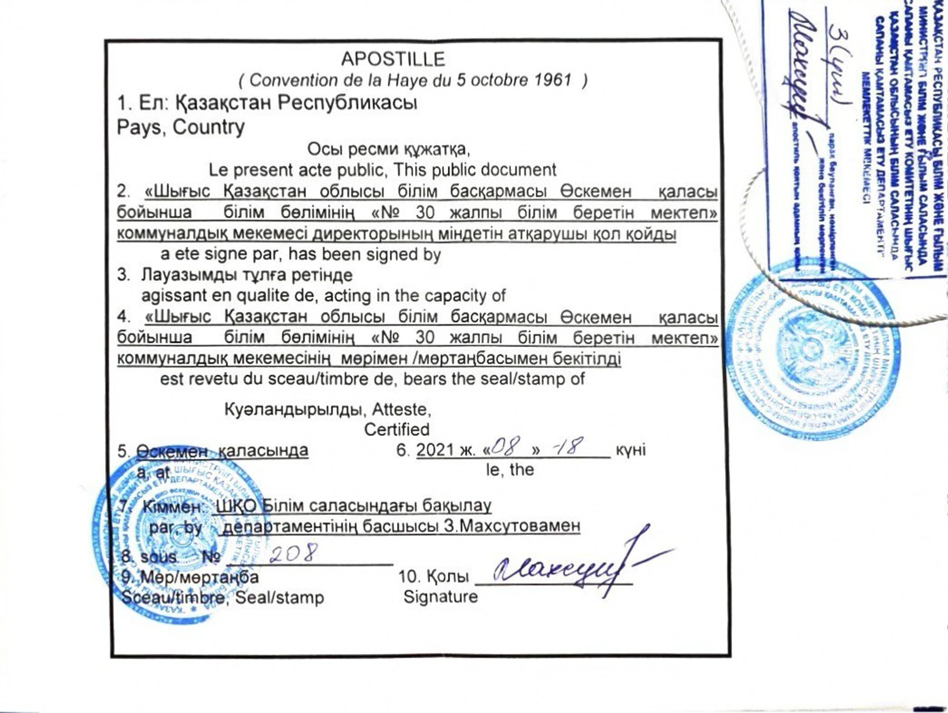 - Для студентов из Казахстана, Армении и некоторых других стран необходимо поставить апостиль на аттестат и приложение к нему (см. фото 7). Справку о часах апостилировать не нужно.